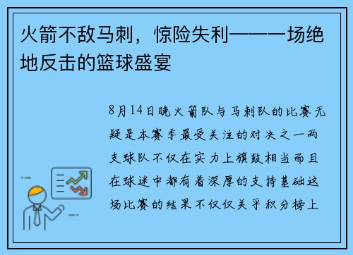 赛事概述与精彩回顾 2023年全国篮球锦标赛在江苏卫视在线直播网的全程直播下,吸引了众多篮球爱好者的关注。赛事汇聚了全国各地的顶尖球队,展现了高水平的竞技状态和激烈的比赛氛围。通过直播,观众不仅能够实时观看比赛,还能感受到现场的紧张与激情。本文将从赛事的精彩瞬间、球员表现、战术分析以及观众反响四个方面,对本次锦标赛进行详细回顾与总结。 赛事的精彩瞬间 在本届全国篮球锦标赛中,许多精彩瞬间令人难以...